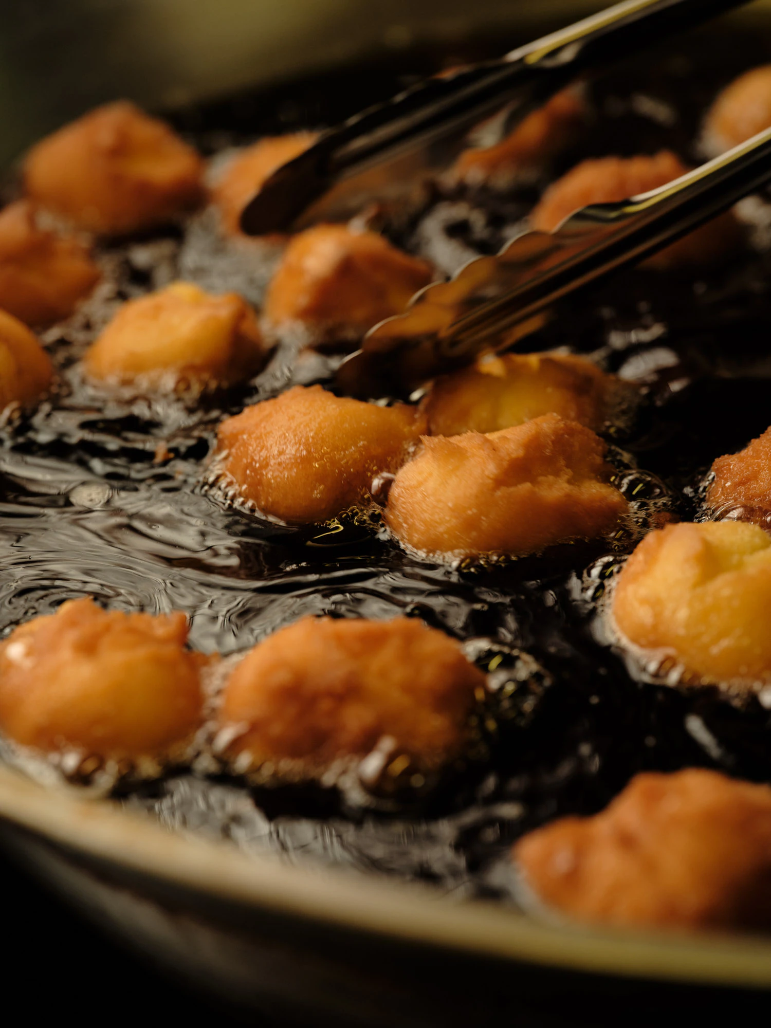 「さよこの店」のサーターアンダギーは、熱々でふっくらと膨らみ、まるで咲き誇るチューリップのような形をしている。沖縄の人々が何世紀にもわたって食べてきたサーターアンダギー。この店は豊かな卵の風味が特徴だ。店主の東恩納さよ子さんは2000年に店を開き、今では毎日1,000個以上を揚げている。プレーンに加え、さつまいも、バナナ、よもぎ、黒糖なども。午後早くに売り切れることが多い。