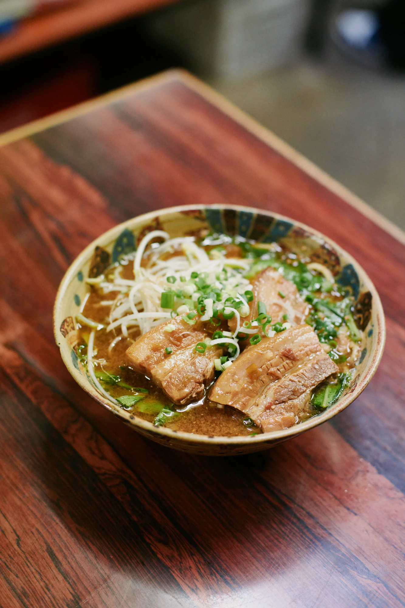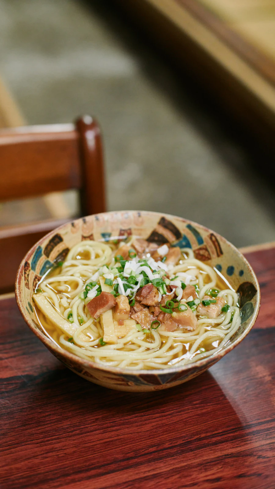 八重山そばは、豚骨、鰹節、昆布で取った出汁に、細く丸い麺、豚肉の細切り、青ネギ、かまぼこを浮かべた、満足感たっぷりで、どこか心温まる料理。キミ食堂では、店主の生盛正樹さんが自家製の赤味噌を少し加える。この味噌は、 1970年代初頭に食堂を開いた祖母・キミさんが常連客の二日酔い対策として考案したレシピだ。よく店を訪れる高校生に最も人気なのは、薄切り牛肉がのった「薄切り牛肉盛そば」。「スペシャルそば」には厚切りの豚肉がのっている。