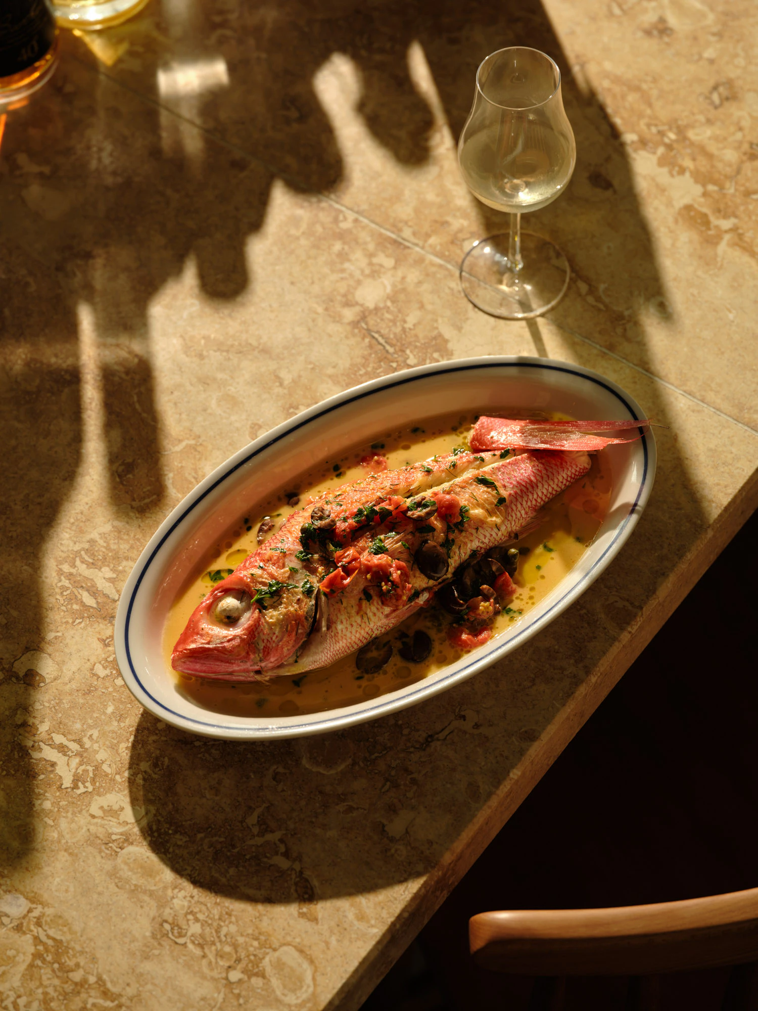 島で暮らす人が「特別な日に訪れるとっておきの店」と語るこのビストロは、 730の交差点から10分ほど歩いたビルの2Fにひっそりと佇む。店主の倉島恵悟さんが作るのは、多彩なシャルキュトリーや赤マチの白ワイン煮など、島の食材を確かなフレンチの技術で昇華した洗練の一皿。落ち着いた店内でナチュラルワインを嗜みながら、静かに語らうことができる空間だ。