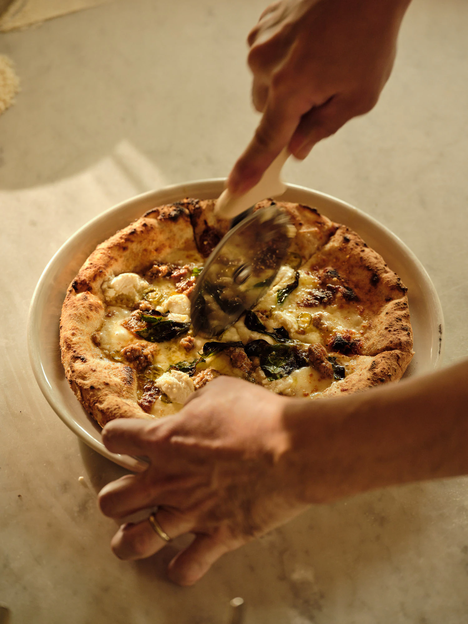 東京やイタリアで修行を積んだ丹治智規さんが腕をふるうピッツェリア。定番のマルガリータや、スタッフのおばあが手作りする島の油味噌を使ったピザ、絶妙なほろ苦さのティラミスといった品々を、伝統的な古民家を改装し、八重山の懐かしさとナポリの空気感が漂う店内で楽しめる。島の間伐で出る未利用木材を薪木にしたり、ピザを焼いた灰を陶芸作家に釉薬として提供するなど、島の自然の循環を垣間見ることもできる。