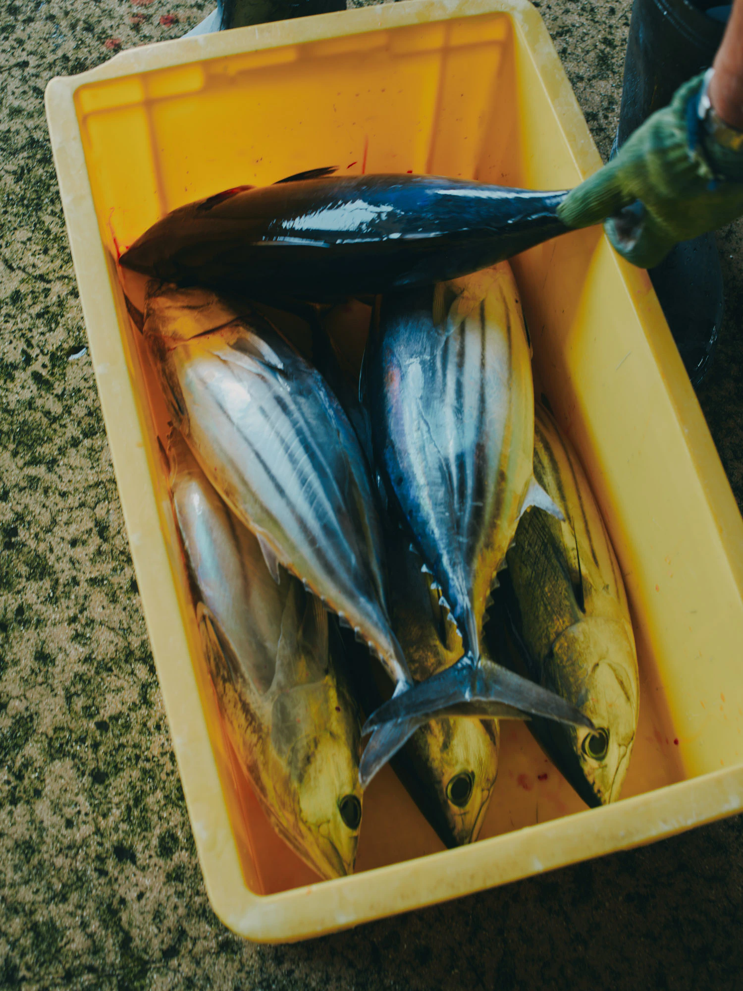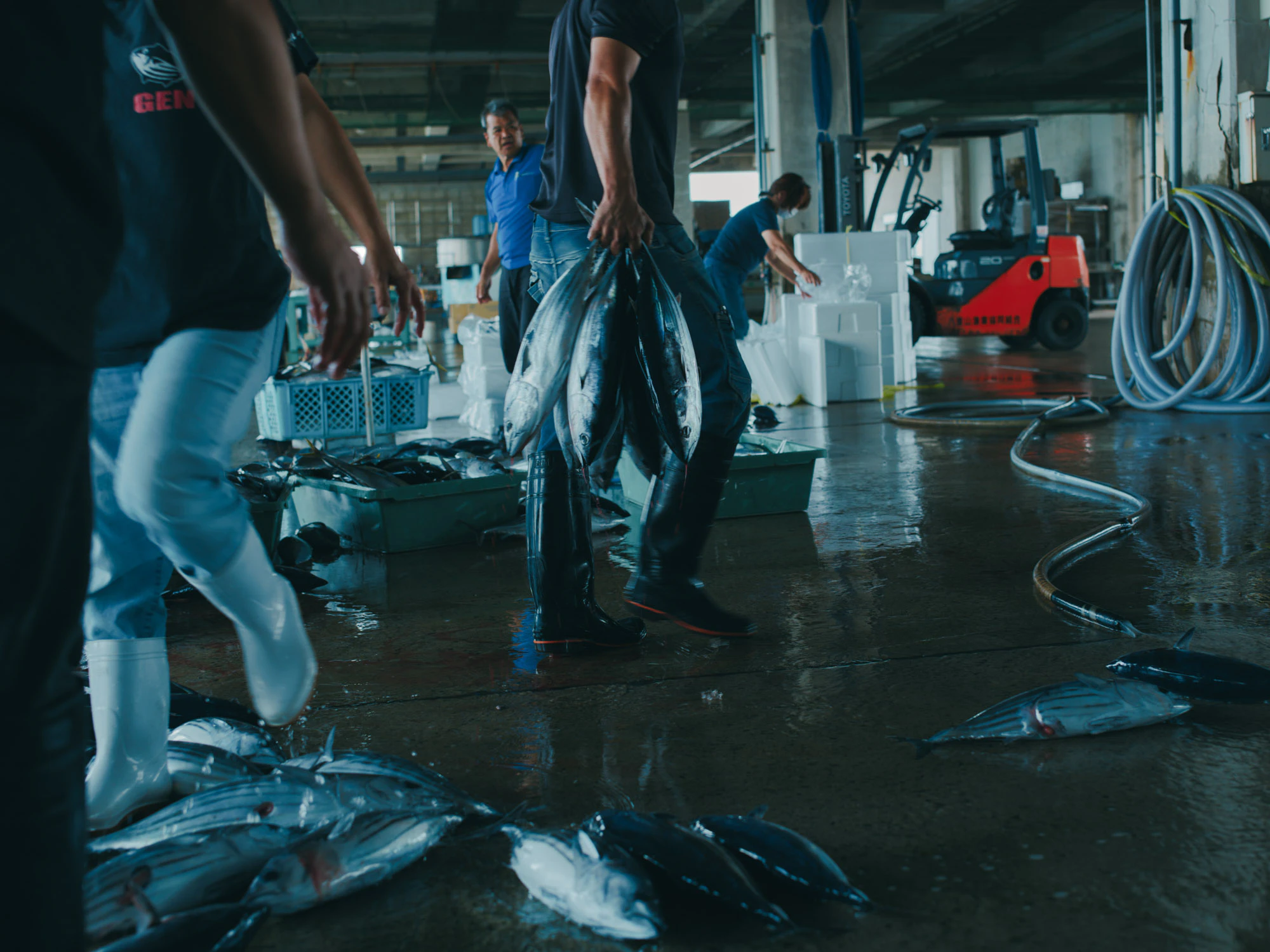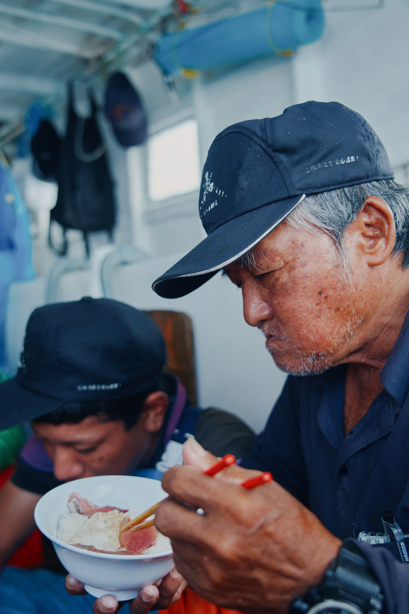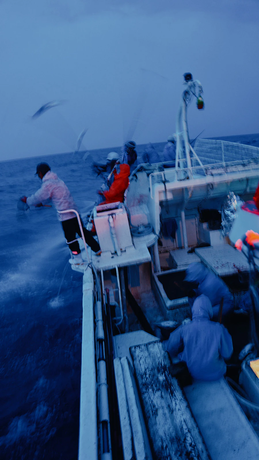 The fishing ended around 10:00 a.m., and the fishermen had breakfast on board while returning to port. There was their last chance to rest. Back in Ishigaki, they must unload the catch, then prepare and clean the fish for shipment to supermarkets across the country. They follow this schedule every day during the fishing season, barring typhoons. As the port finally came into view, Matsuoka, a veteran crew member and son-in-law of the captain, smiled at our cameraman, who was exhausted from the long hours of wind, rain, and undulations of the ship. “Good work out there. The sea was nice and calm today.”